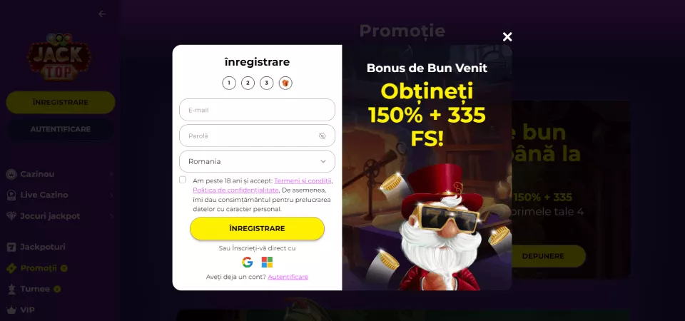 Cum te înregistrezi la Jacktop online casino și te conectezi în contul de utilizator?
