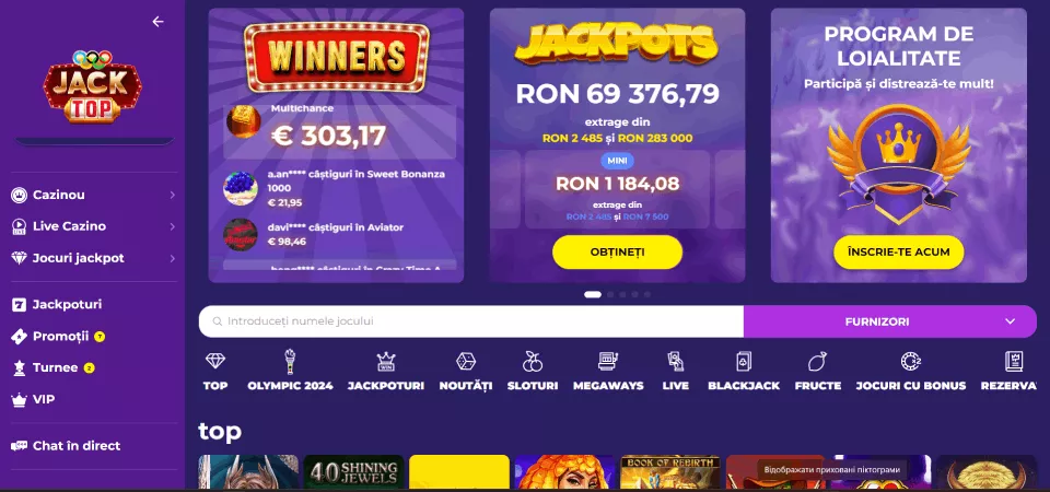 Platforma virtuală de casino Jacktop îți oferă acces la peste 5000 de jocuri, bonusuri, promoții și turnee de top când te înregistrezi din România. Citește recenzia și vei afla informații complete despre versiunearomânească online casino Jacktop.